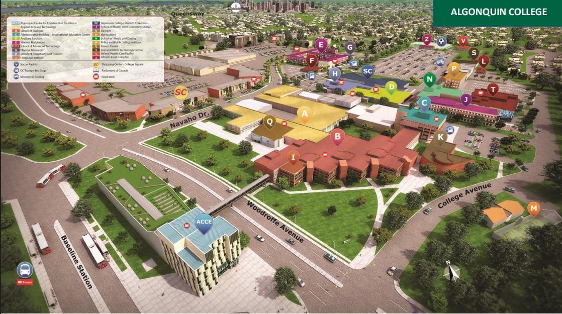 Algonquin College는 1967년에 설립된 캐나다 온타리오주의 공립 전문대학(College of Applied Arts & Technology)으로, 오타와(Ottawa)를 중심으로 페름브록(Pembroke), 퍼스(Perth) 등 총 4개의 캠퍼스를 운영하고 있습니다. 300개가 넘는 다양한 프로그램을 제공하는 대규모 교육기관으로, 매년 수만 명의 학생들이 실무 중심 교육을 받기 위해 입학하고 있습니다.