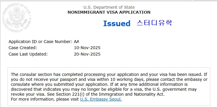 미국 방문연구원 진행을 위해서 여러 유학 상담해 보았는데, 스터디 유학 처럼 경험이 많은 곳을 못 찾았고, 원장님의 시원한 상담에 신뢰가 갔어요. 여름쯤 서류 제출을해서 저는 미국비자 인터뷰를 11월 13일에 진행되었고, 20일에 최종 승인이라는 기쁜 소식을 받았습니다.
