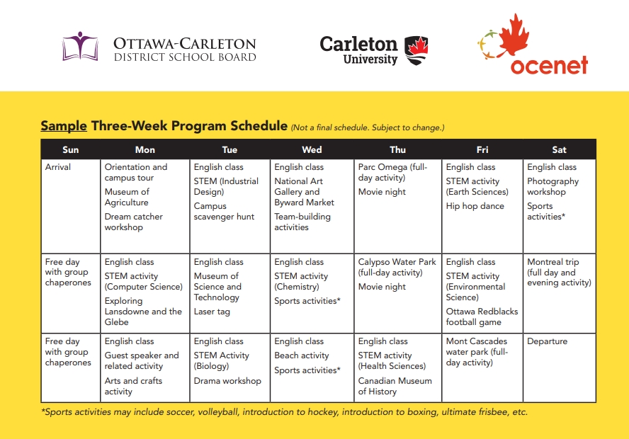 오타와 칼튼 교육청 캐나다 여름 방학 프로그램