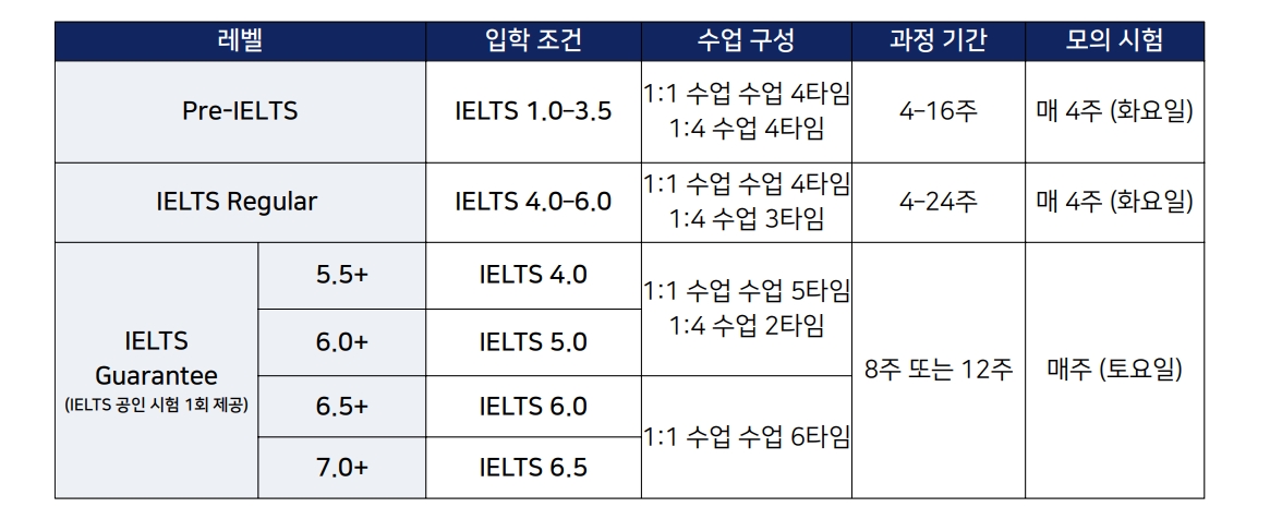 - 기초부터 체계적으로 IELTS를 시작하고 싶은 초급자부터, 점수 목표가 확실한 고급 학습자까지