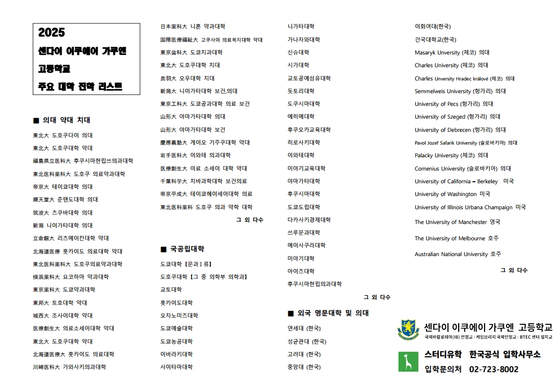 센다이이쿠에이 가쿠엔 고등학교 대학 합격 현황